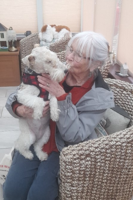 Just to say hello and an update on Betty, can’t believe it’s been six months!She’s doing so well and has transformed from when we got her in April.She’s such a loving little girl and so funny, she’s a right little character! She’s made herself right at home now, she loves her cuddles and will pounce on you and put her paws either side of your neck! She loves playing now and gets really puppy ish it’s so funny. Her and Bertie are good, they have their moments but they play with each other (usually with tug it sounds like they are trying to kill each other! But no fighting) and sometimes snuggle up, they both manage to sleep on my lap together!Eleanor, Kevin, Bertie & Betty Nov23